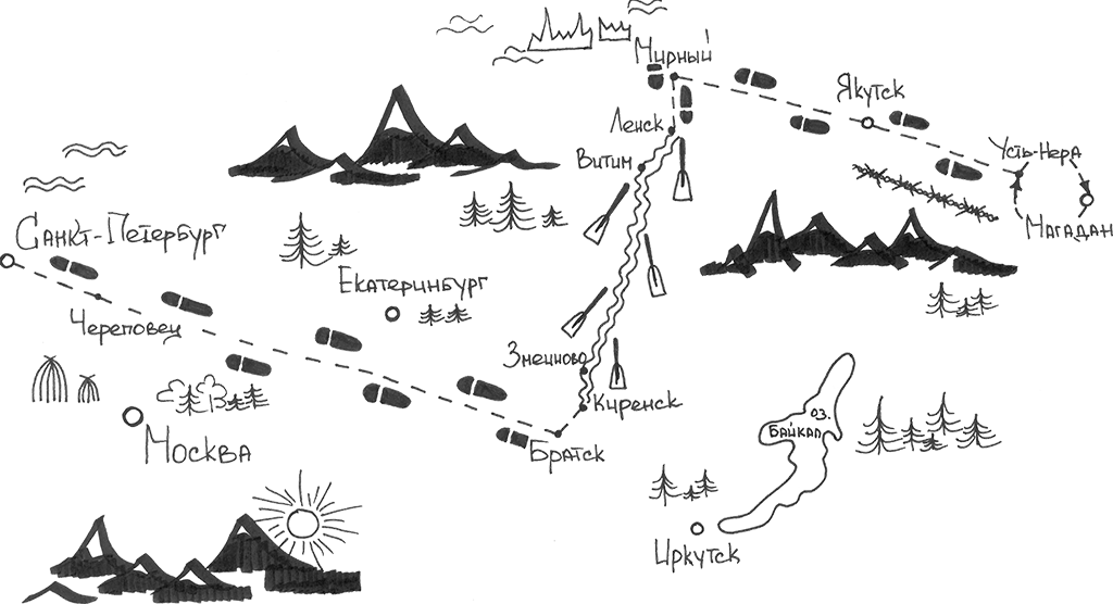 Прошло три года с моего первого одиночного путешествия по России. Мне исполнилось 23 года. И, несмотря на желание знакомых и близких друзей, чтобы я отправилась за границу, я каждое свое путешествие вновь и вновь возвращалась туда. В любимую Восточную Сибирь. И все годы мне безустанно снилось мое излюбленное место. Извилистые берега реки Лены, неспешный ритм ее течения, запах хвойного таежного леса. Предаваясь воспоминаниям, я даже лучше засыпала. Я помнила ту первую ночь, проведенную у Лены, до мелочей. Как пыталась самостоятельно разжечь костер, как встретила случайного рыбака, который накормил и помог с огнем, как я всю ночь ходила к реке и пила чистую холодную воду. А еще знакомство с местным писателем Александром Георгиевичем, который всю жизнь прожил на Лене и произнес в одну из наших встреч: