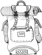 У Леши большущий синий рюкзак за спиной. Литров 90, если не больше. С одной стороны рюкзака висят резиновые сапоги, с другой веревки и скобы.
