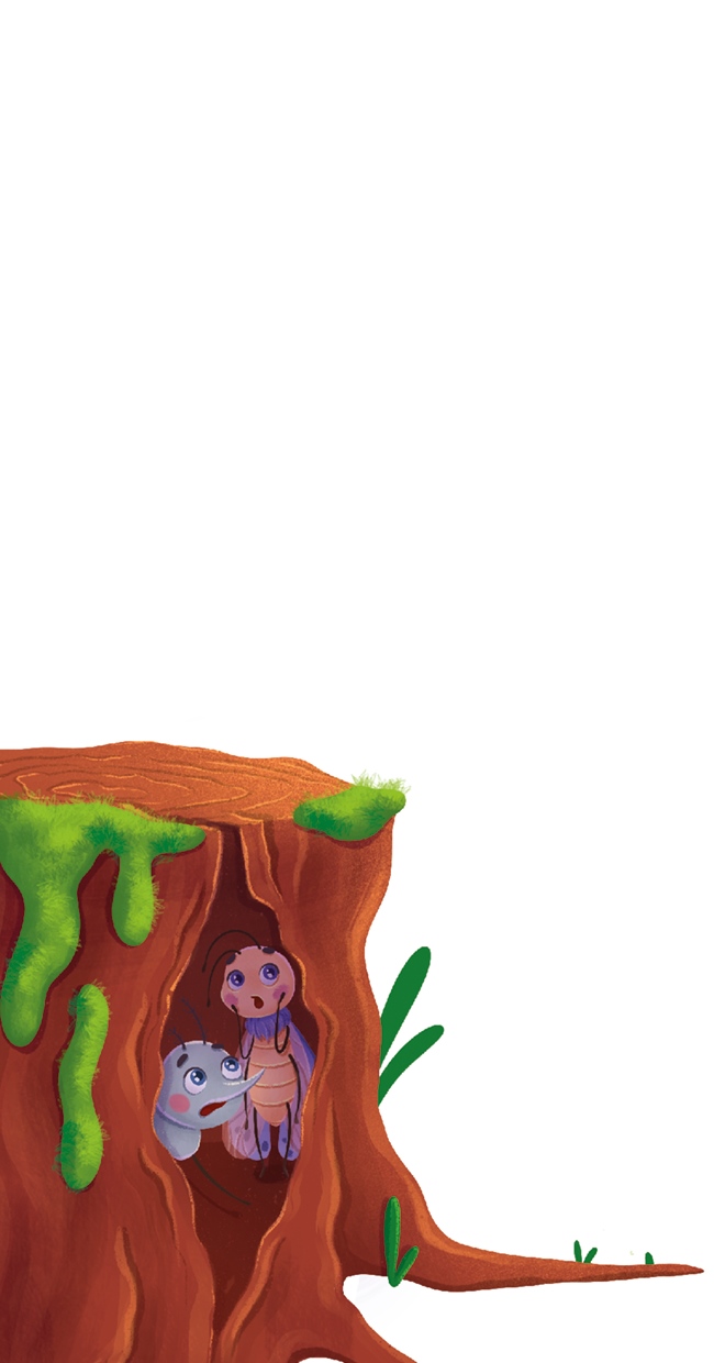 Путешественники опрометью рванули вперёд. Комар мчался, как самолёт! Моль и того быстрее словно ракета! Куда там Стрекозе с её скоростью автомобиля! Долетев до корявого, покрытого мхом пенька, беглецы юркнули в небольшую трещину в его коре.