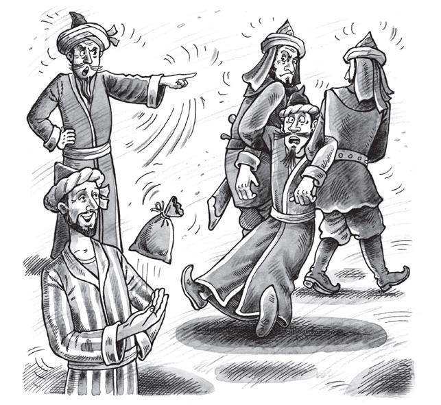 Внутренний голос Насреддина предупреждающе произнёс: «Не суйся в этот богопротивный кружок. Они каждый вечер обирают доверчивых простаков. Вовлекают в игру, дают возможность выиграть несколько монет и пускают по миру. Случается, без чалмы и халата. Останешься с носом».