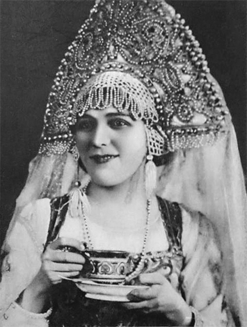 Мэри Пикфорд в образе русской красавицы во время визита в Москву в 1926 г.