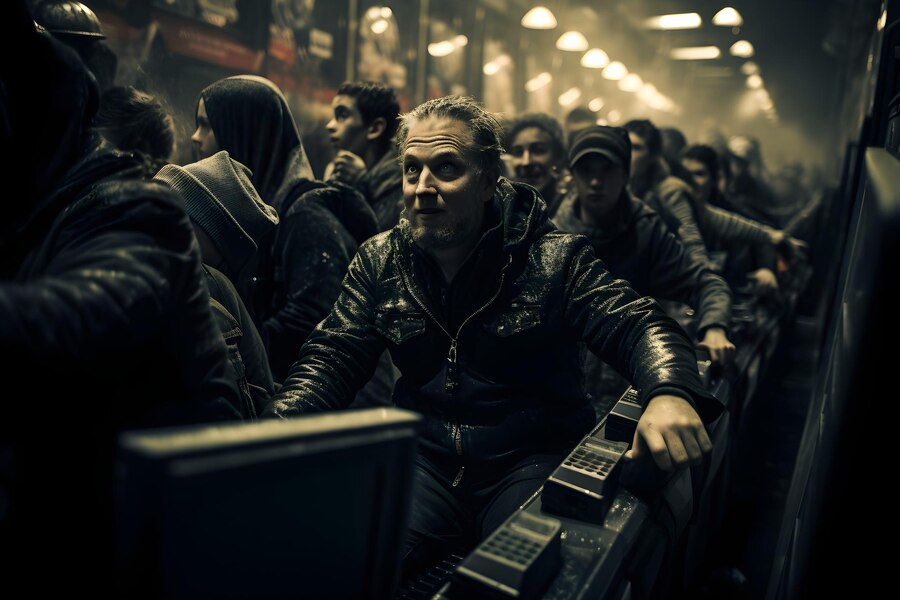 Три робота тут же взвели автоматы в сторону источника звука, готовясь по первому приказанию изрешетить говорящего. Девушка моментально достала из кобуры, спрятанной под плащом, старый пистолет и наставляет его на мельтешащую фигуру. Четыре ствола уставились на коренастого субтильного мужчину, одетого в вещи, присущей программаннам группы «А-7». Это серые брюки, маловыразительная куртка и тяжёлые чёрные короткие ботинки, уходящие под штаны. На голове у парня серенькая кепка. Но вот только вид одежды удручает всё потёрто, в заплатках, местами изодрано, а ботинки перетянуты леской, чтобы не развалились.