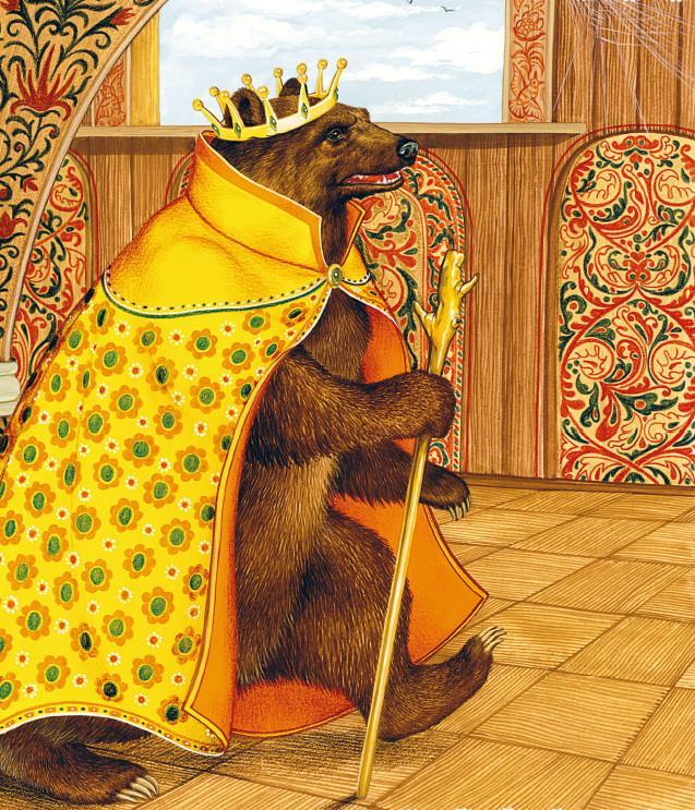 Сейчас побегу вам за едой, говорит царь-медведь, а вы пока здесь сидите, отдыхайте.
