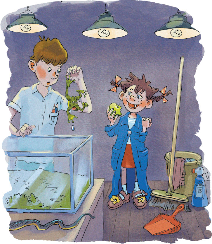 Вовка открыл аквариум, взял лягушку и заботливо пересадил в рюкзак. Пора было возвращаться на урок. На то, чтобы нарисовать крокодила, оставалось всего десять минут. Но у вольера с крокодилом уже сидела Ватрушкина.