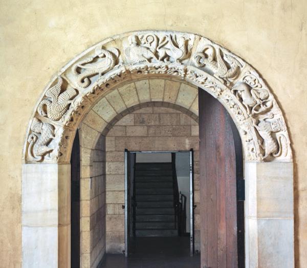 Арка, украшенная рельефами с изображениями мантикоры, пеликана, василиска, гарпии, грифона, амфисбены, кентавра и льва.