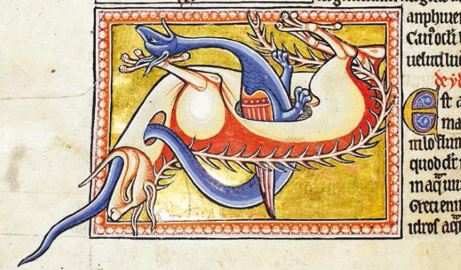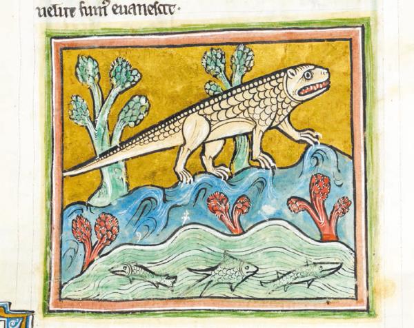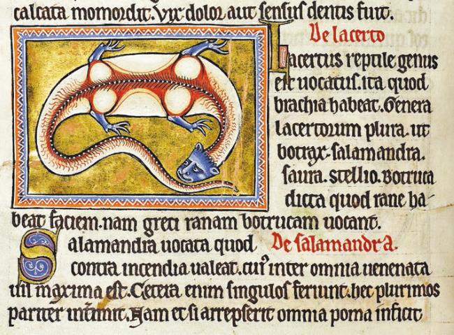 Ящерица из Абердинского бестиария, Англия, XII век, (библиотека Абердинского университета, Шотландия, Univ Lib. MS 24, folio 69v).