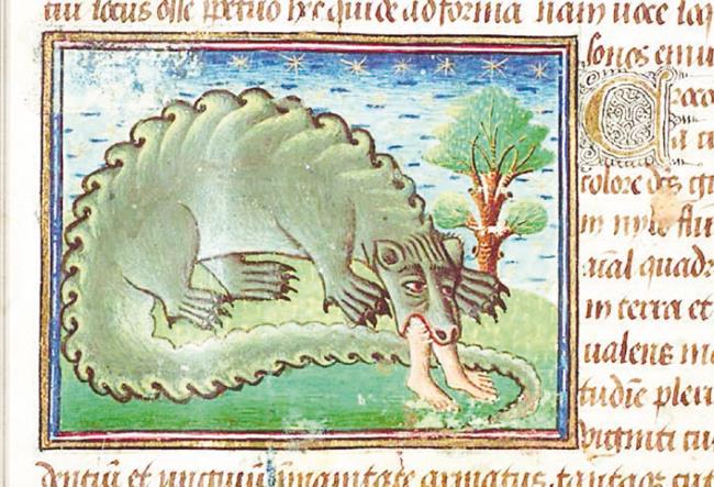 Крокодил из «Рочестерского бестиария». Англия, XIII век.