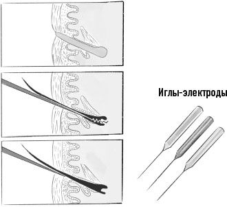 Исключительно салонная процедура. Специалист вводит иглу-электрод в фолликул и посылает электрический ток, разрушая волосяную луковицу. Это единственный метод, который позволяет избавиться от волос навсегда, однако у некоторых людей волосы все равно отрастают спустя какое-то время.