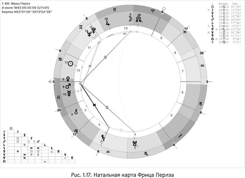 Натальная карта основоположника гештальт-терапии Фредерика (Фрица) Перлза показана на рис. 1.17.