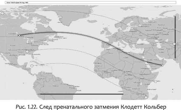 Наконец, еще одна интересная деталь: Клодетт родилась через две недели после полного солнечного затмения, которое было видно и в Париже, и в Нью-Йорке, а его след пересек Атлантику, как бы указывая путь, который привел эту очаровательную женщину к славе (рис. 1.22).