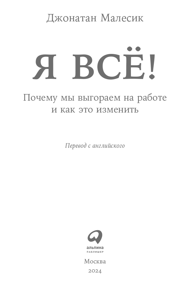 Замысел книги «Я всё!» происходит из моего желания понять, почему миллионы работников из разных сфер деятельности лишаются сил, необходимых для выполнения своих задач, и почему это заставляет их чувствовать себя неудачниками. Для меня выгорание это ощущение, что ты разрываешься между ожиданиями от работы и реальностью. Я уверен, что выгорание это культурный феномен, который широко распространился в последние полвека, однако корнями он уходит в наше убеждение, что работа это способ не только заработать деньги, но и обрести чувство собственного достоинства, сформировать характер, найти смысл жизни. В сущности, несмотря на всеобщую озабоченность по поводу выгорания, само это явление продолжает существовать, потому что мы уважаем эти ценности. Мы боимся потерять смысл, который обещает нам работа. При этом условия труда, типичные для США и других богатых постиндустриальных стран, мешают нам достичь того, к чему мы стремимся.