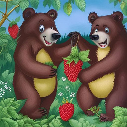 Как-то раз два медведя договорились пойти в лес за малиной. И вот они встретились у большого куста и стали спорить, чья малина и кто ее будет собирать.