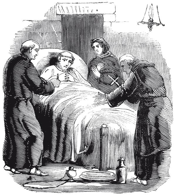 Несколько минут Амбросио смотрел на свою сиделку с радостью и тревогой. Она сидела подле его постели, склонив голову и, как всегда, низко опустив на лицо капюшон.