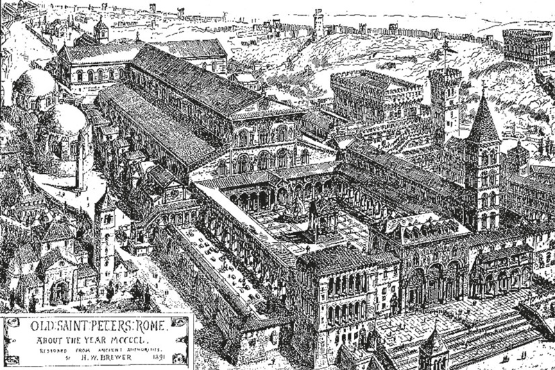 Гравюра XIX века, изображающая вид Базилики Святого Петра в 1450 г.