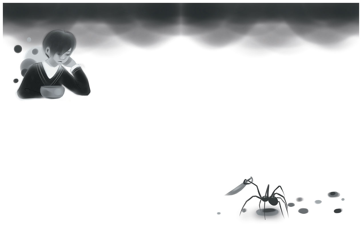 «Странно! думал он. Со мной что-то случилось Настроение ужасное. Может, я заболел? И паук этот омерзительный вчера, в булочной с такими глазами словно пронизывает тебя насквозь и тащит куда-то. До сих пор мурашки по коже»
