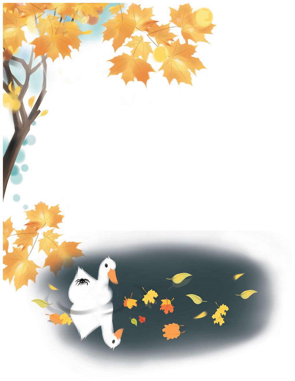По дороге в школу Петя размышлял о том, как стремительно пролетел сентябрь. Удивительно! Листья, раскрашенные в разные цвета, пестрели на деревьях, а ведь ещё совсем недавно были яркозелёными. А теперь в воздухе витал горьковатый запах осени, и листья всё быстрее опадали, образуя шуршащий ковер под ногами.