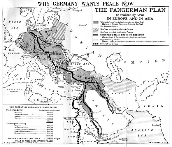 Шаги по проведению закона в берлинском Рейхстаге в 19121913 годах по созданию немецкой государственной компании по разработке и эксплуатации вновь обнаруженных нефтяных месторождений, независимо от американского синдиката Рокфеллера, стопорились и затягивались до начала Мировой войны в августе 1914 года, которая вообще сняла этот вопрос с повестки дня. План «Дойче банка» заключался в сухопутной транспортировке месопотамской нефти по багдадской железной дороге, вне зависимости от возможной морской блокады со стороны Британии, делая тем самым Германию независимой в обеспечении своих потребностей в нефти.