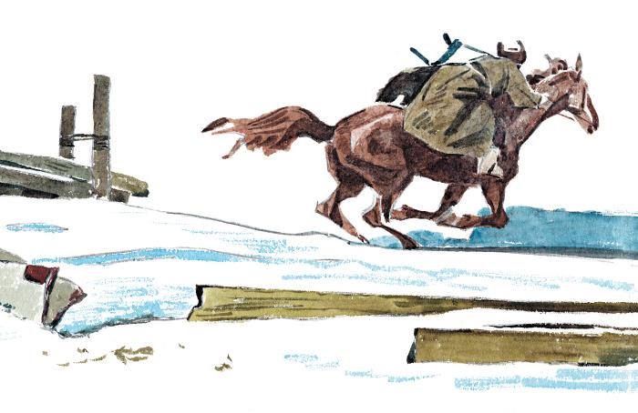Пули засвистели с новой силой. Но всадник, пригнувшись к шее коня, будто слившись с ним воедино, скакал к спасительному лесу. А партизаны следили за ним с замирающим сердцем.