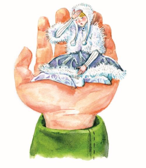 Снег заходил ходуном, и из-под него показалась девочка. Крошечная не больше ладони. На ней была белая шапка-ушанка с пушистыми помпонами на длинных верёвочках и белая меховая курточка. Блестящая пышная юбка до колена с подолом, отделанным мехом, открывала изумительные расшитые серебром сапожки.