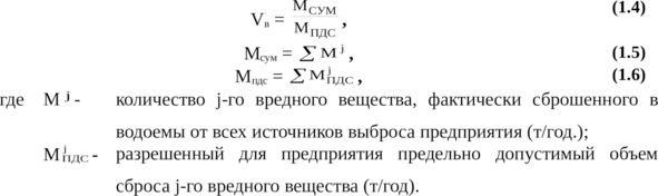 Показатель превышения нормативного объема сбросов вредных веществ в водоемы (Vв) безразмерный коэффициент, характеризующий степень превышения реальных сбросов вредных веществ в водоемы над нормативными уровнями ПДС.