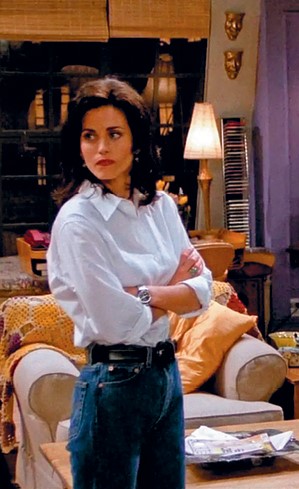 В отличие от других героинь стиль Моники практически не изменяется на протяжении всего сериала, он универсален и почти не зависит от модных тенденций. «Интересно, что сейчас именно гардероб Моники считается культовым стилем 90-х», отмечает художница по костюмам Дебра Макгуайр. «Это очень занимательно, потому что часто, когда мы возвращаемся к прошлому, у нас немного другая перспектива. Нам кажется, что вот именно так тогда и ходили. Но на самом деле Моника немного не дотягивала до того, чтобы выглядеть модно, а теперь это считается культовым стилем 90-х» смеется дизайнер.
