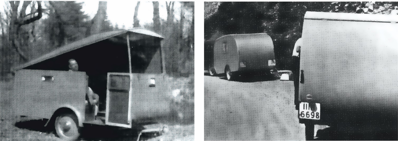Рисунок 2.9. Слева: Арист Деслефс на своей фабрике по производству жилых прицепов. Справа 6 путешествие по Германии с семьей и караваном с подъемной крышей.