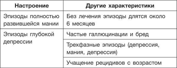 Таблица 2.2. Характеристики биполярного расстройства I типа