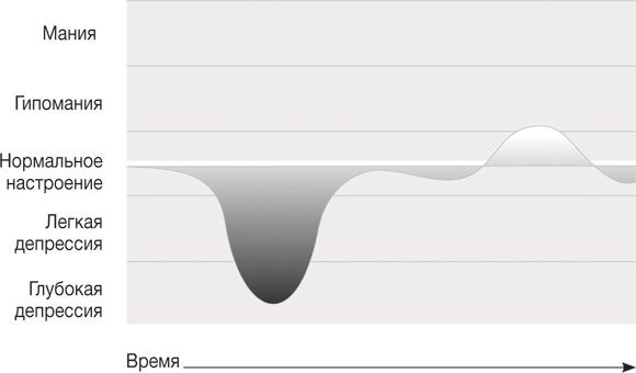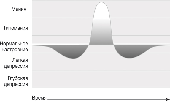 Биполярное расстройство II типа часто ошибочно определяют, как легкую форму биполярного расстройства I типа. Несмотря на то что у пациентов с биполярным расстройством II типа не наблюдаются самые тяжелые симптомы полностью развившейся мании, больные практически все время испытывают иные проявления. Для нарушения II типа характерны длительные периоды депрессии, и они часто могут оказаться более разрушительными, чем пугающие, но краткосрочные эпизоды при биполярном расстройстве I типа (рис. 2.3).