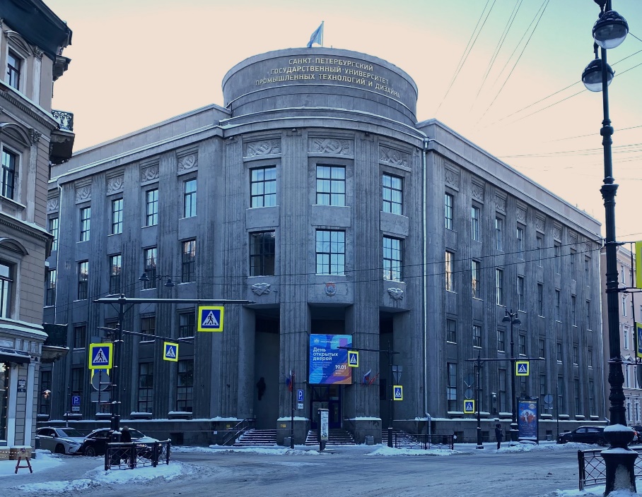 Снова пересечем Невский проспект и, подходя к Кирпичному переулку, обратим внимание на мрачноватый серый угловой дом 18, несколько чужой в праздничной застройке Большой Морской. Такой вид он приобрёл в начале 1930-х годов, когда, упрощая первоначальный проект, архитекторы Лев Владимирович Руднев и Яков Осипович Свирский закончили постройку для текстильного института. А ведь замышлялось все куда как грандиозней, просто время исполнения замыслов пришлось на переломные годы в жизни страны.