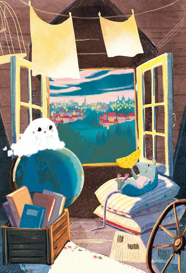 Серая Крыса была подругой и соседкой Бу. Её крысиная усадьба, построенная из мятых картонных коробок, располагалась по другую сторону улицы рядом с контейнерами для мусора. Крыса частенько наведывалась в гости к малышу-привидению. Они с удовольствием болтали, до упаду смеялись и носились наперегонки по унылым коридорам заброшенного дома, вызывая приступы головной боли у толстого ворчливого дяденьки с портрета. Вот и сегодня Крыса пришлёпала к Бу на чердак это было любимое место их встреч. Пока хозяин, сидя верхом на глобусе, в миллионный раз рассказывал о городских огоньках-светлячках, его подруга уплетала сытный ужин, попутно наставляя товарища.