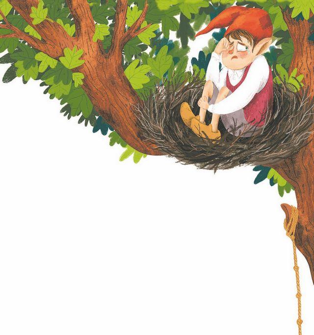 Прибежав в сад, он вскарабкался по стволу клёна и забрался в воронье гнездо. Вот здесь уж гном разрыдался, вытирая рукавом слёзы, катившиеся по щекам.