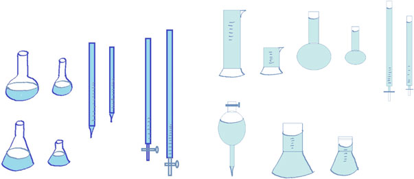 При проведении лабораторных работ используют измерительную посуду: мерные колбы, пипетки (градуированные и пипетки Мора), бюретки, мерные цилиндры и мерные пробирки.