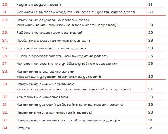 Таким образом, Холмсу и Рэю удалось установить, какие события оказывают максимальное влияние на наше душевное состояние, и оценить степень их стрессогенности (рис. 2).