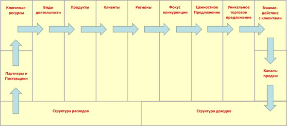 Шаблон Canvas очень удобен и популярен во всем мире. Однако, вместе с тем, он существенно упрощает реальность и не всегда справляется с построением сложных бизнес-моделей. Это выражается, в частности, в том, что данный шаблон не позволяет отображать продуктовые категории и географию бизнеса, а также процесс разработки уникального торгового предложения, т.е. конкурентную стратегию компанию для разных видов деятельности и целевых групп клиентов.