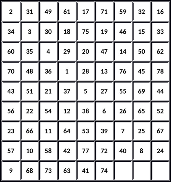 Если у тебя нет колоды, воспользуйся таблицей ниже. Закрой глаза, настройся на свое внутреннее пространство, спроси себя «Какая сегодня энергия дня?» или «Какая подсказка для меня на этот день?» и пусть твой палец коснется какой-то цифры в таблице. Это и будет твоя карта, которую ты легко найдешь по номеру в оглавлении.