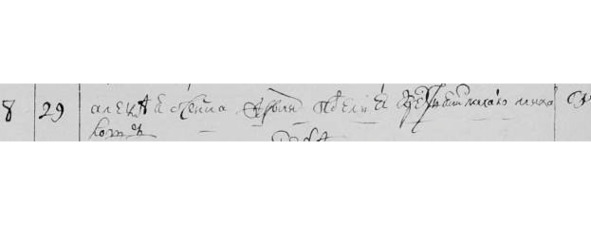 1726 г. Август. «29. Алексея Осеина д. Подъелья кр. Михайло Михайлов. 65».