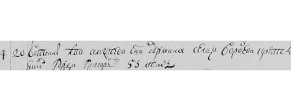 2. Мокий (58) (17271805). 3. Акиндин (173017.8.1798). 4. Карп (26.5.1733). 5. Агафья.