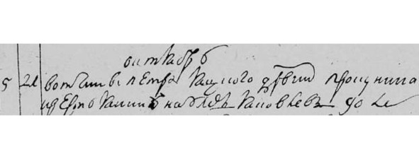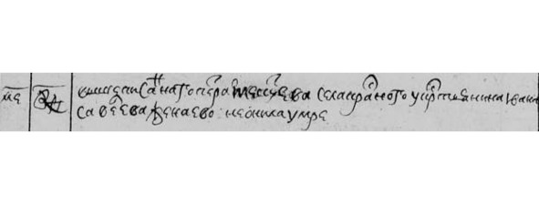 Июль 1723 г. «24. Вышепис. Петра Текутьева с. Красного у кр. Ивана Савельева жена ево Неонила умре».
