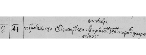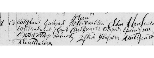МК 1741 г. «Май. 13. Вотч. Григория Текутьева с. Красного кр. Иван Стефанов втор. бр. на вдове второбрачной д. Уварова Матроне Леонтьевой».
