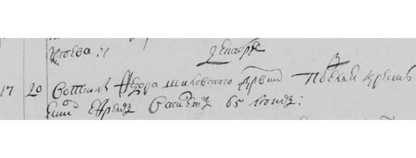 1748 г. «Декабря. 20. Вотч. Федора Шиловского д. Подъелья кр. Ефрем Васильев 65 лет».