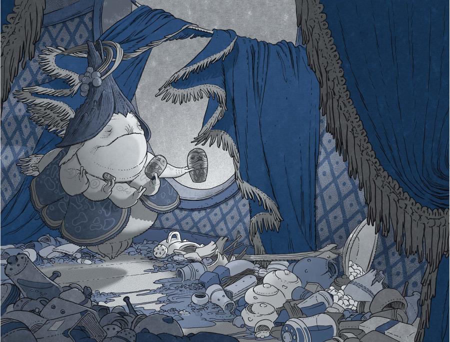 Она пробралась через гору раскиданных приношений в тусклое логово. Бледное толстое существо парило возле открытого окна, из которого лился мутноватый солнечный свет. Всеми своими девятью короткими ручками Ария держала расписанную матрешку. Прорицательница делала вращательное движение и доставала из полой куклы следующую, поменьше.