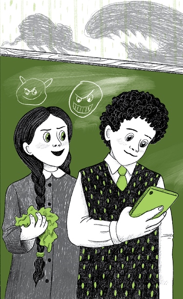 Сидит девочка без музыки. В тишине примеры не решаются. И тут в ушах сначала треск раздался, а потом как зашипит. Будто клубок змей. Хотела девочка вытащить наушники, а учительница как специально прямо на неё смотрит!