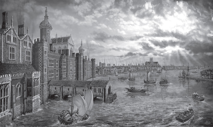 Вид на королевский дворец Уайт-холл со стороны Темзы.