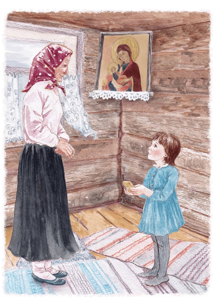 Пока Маруся одевалась, бабушка подошла к большой иконе и из-за неё достала точно такую же, только совсем маленькую, и передала девочке.