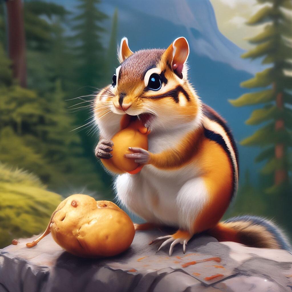 Подойдя совсем близко к маленькому грызуну, он опустил свою большую голову и показал жуткие зубы. Но бурундук никак не отреагировал и продолжил щелкать скорлупу и доставать ядра, чтобы потом с удовольствием их съесть.