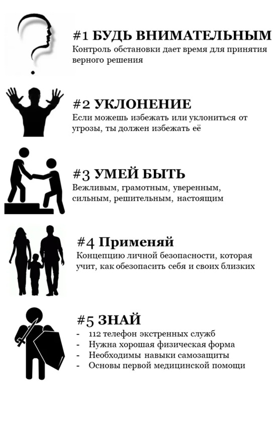 Но если с вами близкие люди, следует дать возможность спутникам отойти и вызвать полицию, привлекать любую помощь. В таком случае применение подручных средств, средств самообороны, драка с противником, затем отход оправданны.