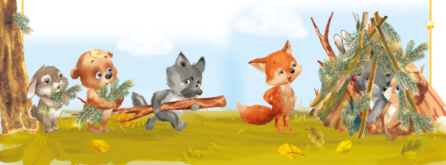 Прячетесь? Вот же уши Зайчонка, а вот лапа Медвежонка, а вот твой хвост, Волчонок, засмеялась Лисичка и погладила большие заячьи уши.