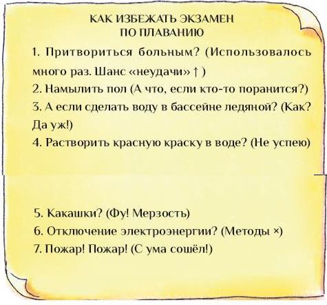 Избежать предстоящего экзамена по плаванию. Я не хочу сдавать этот экзамен, я очень, очень, очень не хочу, Ходже вздохнул.
