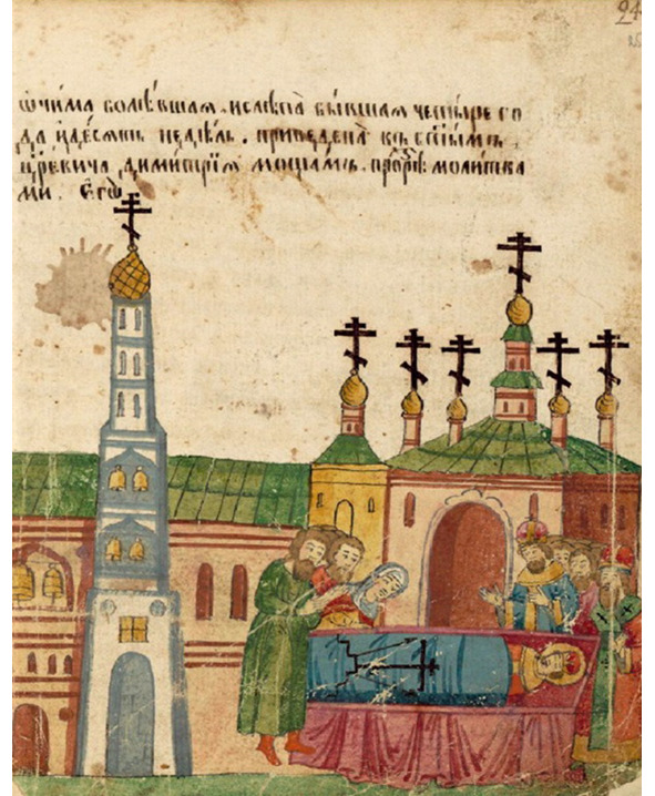 Похороны царевича в Угличе. Миниатюра из Жития страстотерпца царевича Димитрия из собрания П. М. Третьякова105