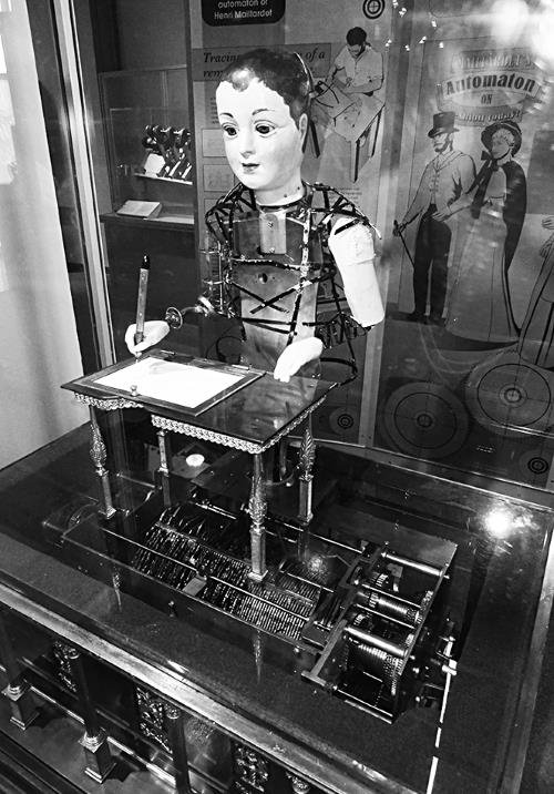 Ещё один автоматон, Draughtsman-Writer швейцарского механика Генри Майлардета предположительно 18001805 года выпуска, имеет настолько сложную конструкцию, что раскрыть его полный функционал смогли только после его восстановления он умеет рисовать несколько довольно сложных картинок и писать стихи.